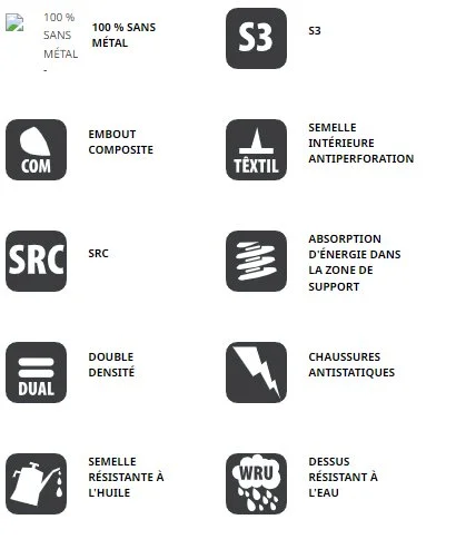 SEMELLE : Polyuréthane double densité antidérapant, résistant aux hydrocarbures