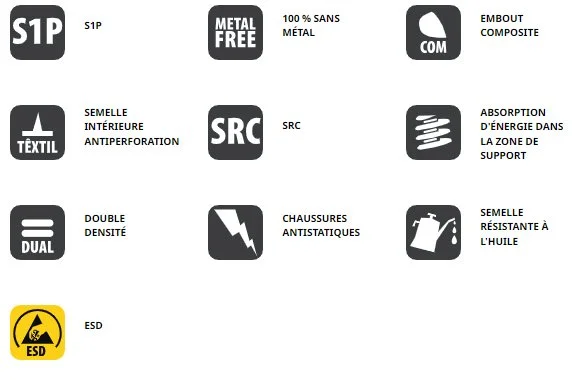 SEMELLE : Polyuréthane double densité antidérapant, résistant aux hydrocarbures