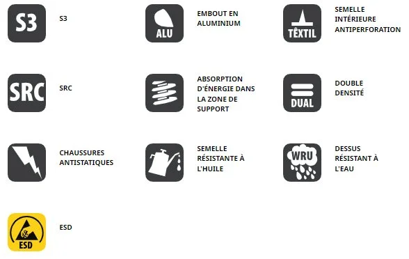 MATERIAU : S3 SRC ESD film TPU/tissu Oxford/microfibre.